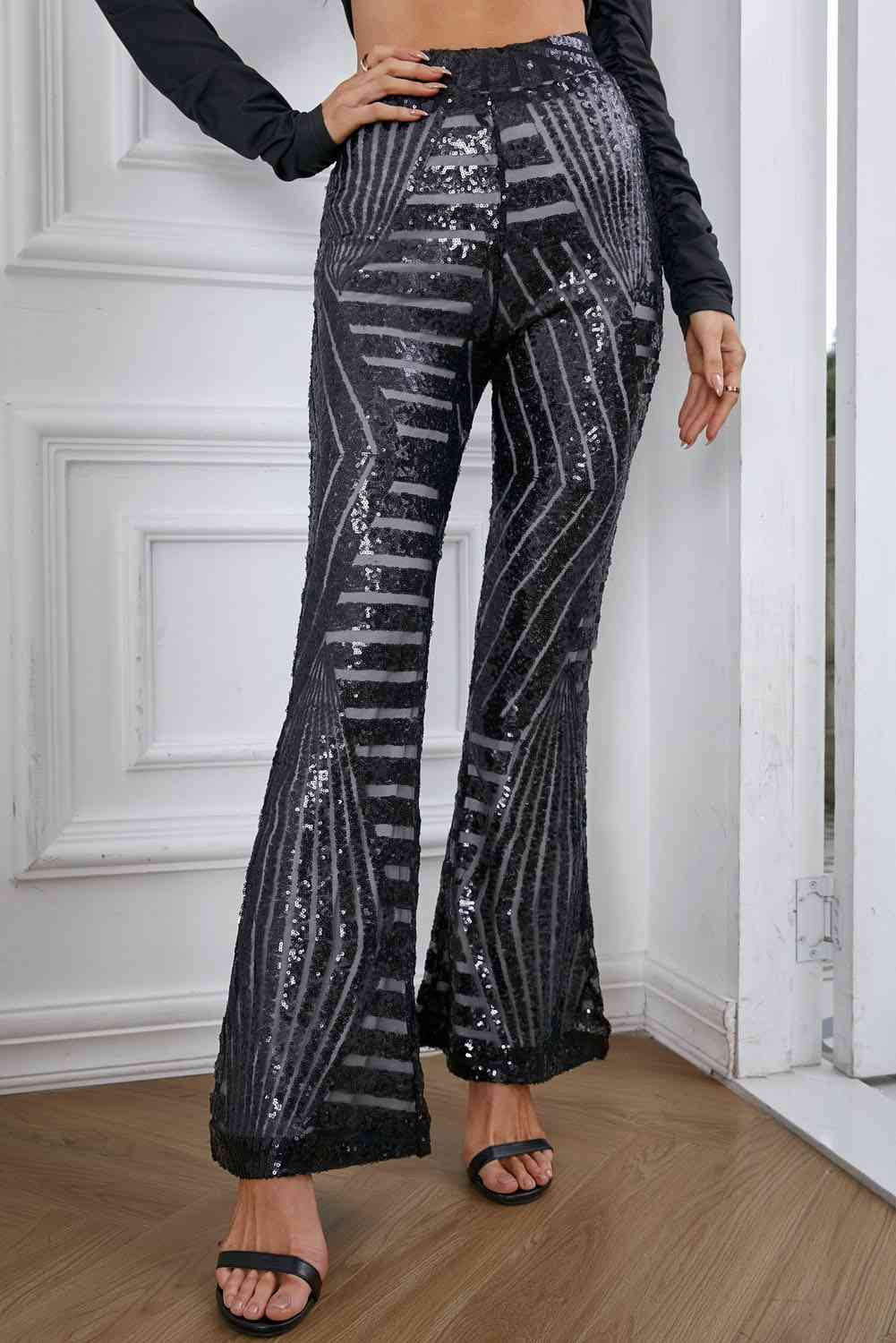 Double Take Sequin High Waist Flared Pants